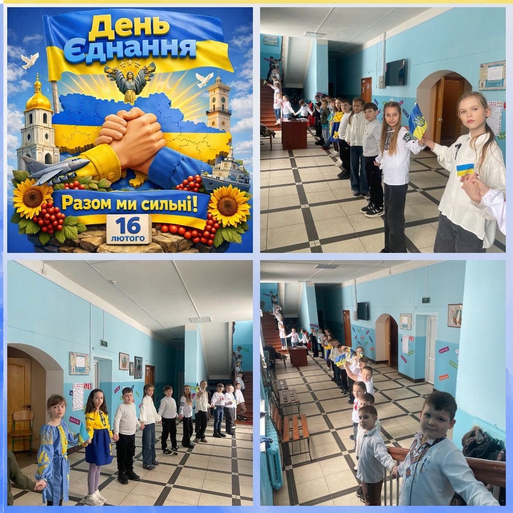 22 січня наша країна відзначає День Соборності, єдності українських земель. Напередодні цього свята здобувачі освіти 1-Б класу разом із класним керівником Тетяною Григорівною Приймаченко переглянули відеоматеріали про історію свята. Діти зрозуміли, що ідея соборності є цінністю українців. На знак єднання утворили «живий ланцюг» єдності, створили композицію «У єдності нас не подолати!» Такий захід формує в дітей ціннісне ставлення до свого народу, сприяє вихованню почуття поваги та гордості за свою державу.