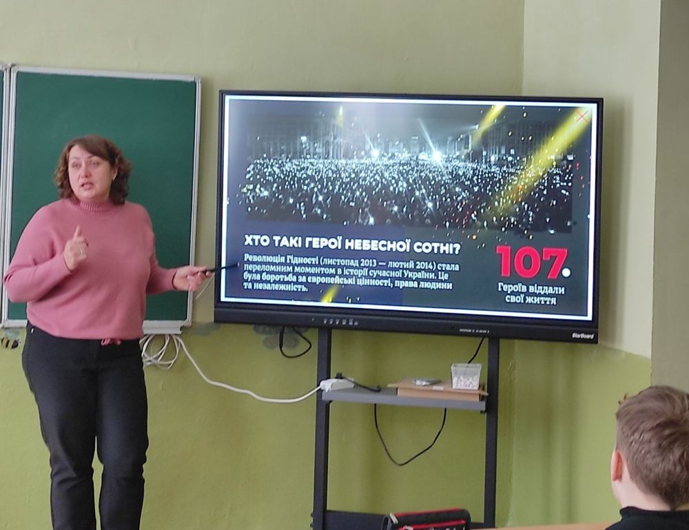 20 лютого з учнями 7-Б класу (клсний керівник А.В.Харченко) було проведено виховний захід, присвячений Дню Героїв Небесної Сотні. Усі згадали трагічні події зими 2013–2014 років та вшанували пам’ять людей, які віддали своє життя за свободу, гідність і європейське майбутнє України. А ще говорили про події Революція Гідності, про силу єдності та відповідальність кожного громадянина за долю держави. Діти переглянули тематичне відео, прослухали спогади очевидців, обговорили поняття «гідність», «патріотизм», «свобода». Особливе враження на семикласників справили історії зовсім молодих героїв, які не побоялися відстоювати правду. Хвилиною мовчання вшанували пам’ять Героїв Небесної Сотні. Зроблені власноруч янголи стали символом дитячої вдячності та незгасної пам’яті.