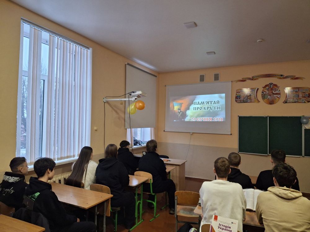 29 січня українці відзначають День пам’яті Героїв Крут. Це ще одна з трагічних і водночас високо легендарних сторінок в історії української визвольної боротьби 1917-1921 р.р. Тож сьогодні здобувачі освіти 11-А класу (класний керівник Н.В.Вірич) ушанували пам’ять Героїв, переглягули цікаві факти з тих подій та перевірили свої знання після перегляду.