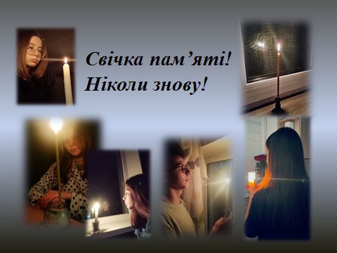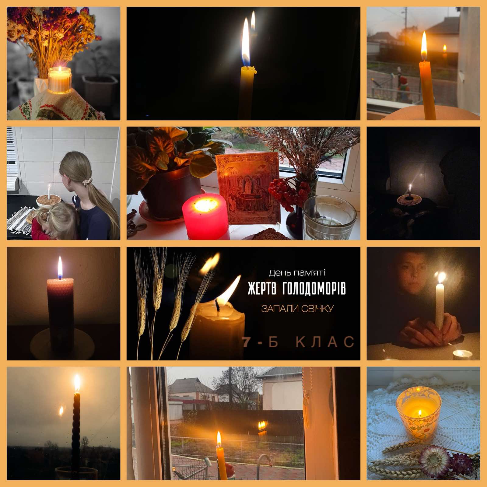 В Україні є давній звичай – у пам’ять про померлу людину запалюють свічку. Та саме Джеймсу Мейсу, досліднику Голодомору, належить ініціатива вшанування жертв голодоморів запалюванням свічки на підвіконні. «Я ж хочу запропонувати лише акт національної пам’яті, доступний кожному: у національний день пам’яті жертв 1933-го (четвертої суботи листопада) визначити час, коли кожен громадянин цієї землі, де майже кожна родина втратила когось із близьких, запалить у своєму вікні свічку в пам’ять про померлих. Це було б гідною відповіддю на слова о. Олександра Биковця, який став священиком в Америці: «…Усі були готові на жертви, знали, що не сьогодні-завтра їх знищать, але їх турбувало передовсім: чи знатиме світ про це, чи світ щось скаже? .. І друга проблема — ще більш духовна: чи буде кому помолитися за всіх, хто загинув?» Навіть сім десятиліть опісля свічка, що мерехтить у вікні, видається мені гідною відповіддю!» – Джеймс Мейс, газета «День», 18 лютого 2003 року. Тепер це усталена в суспільстві практика – щороку в четверту суботу листопада на вшанування тих, хто помер із голоду, українці по всьому світу запалюють свічки. Цього року 22 листопада о 16-й годині Україна схилила голови у загальнонаціональній хвилині мовчання. Опісля біля могил, меморіалів і пам’ятників жертвам Голодомору 1932–1933 років, на центральних площах і вулицях міст і сіл України, на підвіконнях осель українці запалили свічки і лампадки. Педагоги та здобувачі освіти ліцею №2 разом зі своїми рідними приєдналися до Міжнародної акції «Запали свічку пам’яті».<
