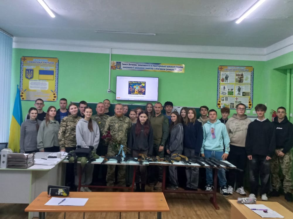 11-АААНапередодні відзначення Дня Збройних сил України відбулася зустріч учнів 11-А класу  з волонтером громади Олегом Соделем. Під час проведення заходу запрошений   гість та  учителі захисту України   Сергій Іванович  Гуленко та  Володимир Михайлович Кутовий зробили акцент на тому, що у війні за незалежність України ми завдячуємо Збройним силам, бо вони сьогодні надійний захист наших життів та збереження державності.  А ще показали  старшокласникам безперервність традиції українського війська у боротьбі  за свободу та державність, прагнули  сформувати відчуття гордості за військову спадщину й усвідомлення, що сучасна боротьба є продовженням багатовікової історії опору, продемонстрували  звитяжні перемоги українців над  ворогом сьогодення.