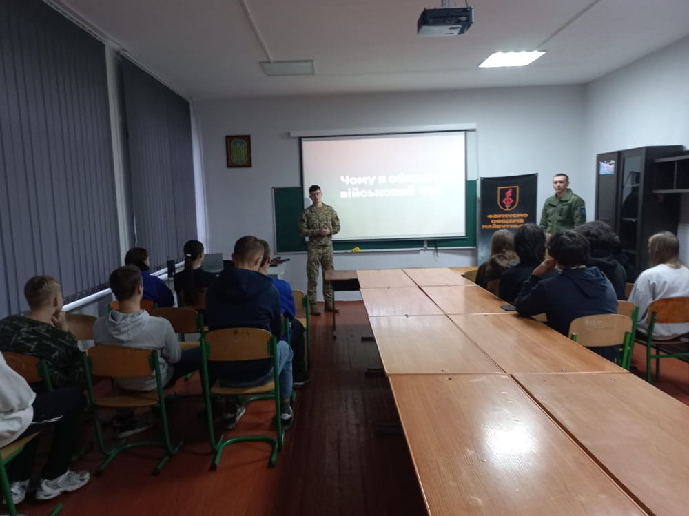 Відповідно до Плану профорієнтаційної роботи ліцею на 2025/2026 н.р. учителі захисту України С.І. Гуленко та В. М. Кутовий днями організували для старшокласників зустріч із представниками Національної академії сухопутних військ ім. гетьмана П.Сагайдачного (м. Львів). Учнівство дізналося про умови вступу, специфіку військової освіти, спеціальності та перспективу служби в Збройних силах України. Старшокласники усвідомили, що вибір військової кар’єри – це не лише можливість здобути престижну освіту, а й стати частиною потужної системи національної безпеки вищого військового навчального закладу.