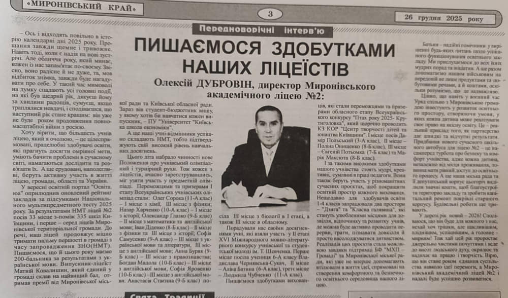 Новини закладуНаш заклад у ЗМІ Схожі статті:Вступна кампанія 2022 Батьківські збори Літопис 1-А класу, класний керівник Близнюк Т.О. Допомагаємо ЗСУ! Віримо в ЗСУ!